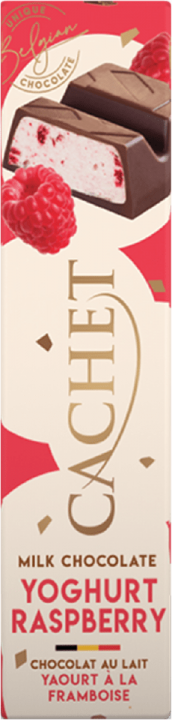 CACHET Mliečna čokoláda plnená jogurtom s malinami