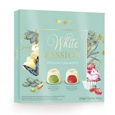 61170 - Kolekcia praliniek - biela čokoláda s jahodovou a pistáciovou náplňou