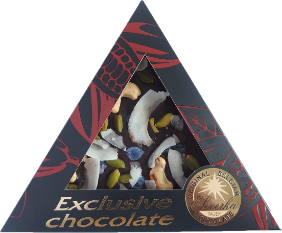 SEVERKA Exclusive trojuholník Horká čokoláda - kešu oriešky, pistácie, fialky a kokos