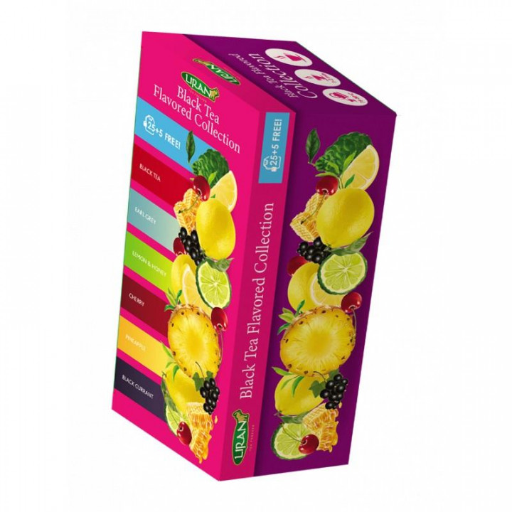 Čierny čaj s príchuťou citrón a med, ananás, višne, čierna ríbezľa, Earl Grey.