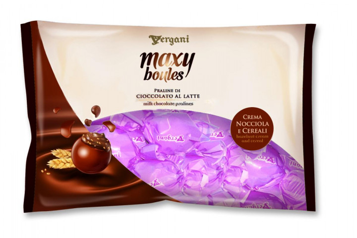 63202 - MAXI Pralinky plnené krémom z lieskových orieškov a cereálií poliate mliečnou čokoládou