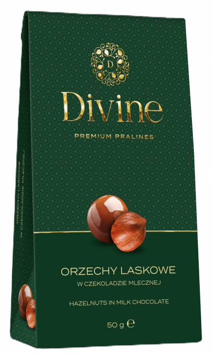 Lieskové oriešky Divine sú dokonalou zmesou chrumkavých orieškov a jemnej mliečnej čokolády.