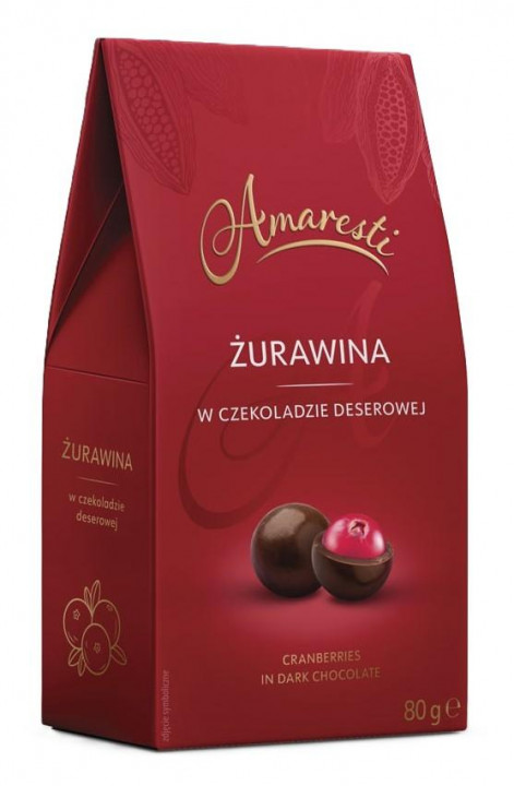 Brusnice sú ovocie charakterizované jedinečnou chuťou a arómou a v prírodnej medicíne sa používajú už roky. Vďaka bohatstvu vitamínov a nutričnej hodnote sú lahodnou a zdravou pochúťkou. Zabalené v jemnej sladkosti horkej čokolády sú ideálnou dennou maškr PLU: 291 Balenie: 12ks / kartón Krajina pôvodu: Poľsko Hmotnosť: 80g